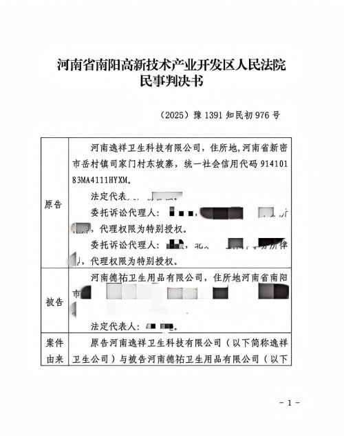 2025 年 12 月 29 日,一份来自南阳高新技术产业开发区人民法院的民事判决书,为一场历时半年多的知识产权维权案画上了圆满句号。